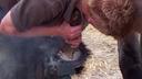 Oogstdemonstratie zoals het vroeger ging met trekpaarden....